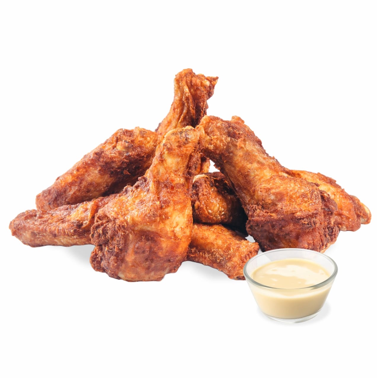 10 aripioare de pui (250g) rumenite la exterior si fragede la interior + BONUS un sos la alegere: : BBQ, branza, dulce acrisor, picant, ranch sau usturoi.